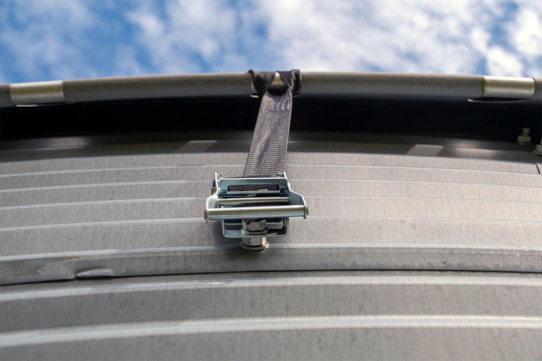 - Rundumspannung mit Spanngurten und Edelstahl-Ratschenschnallen