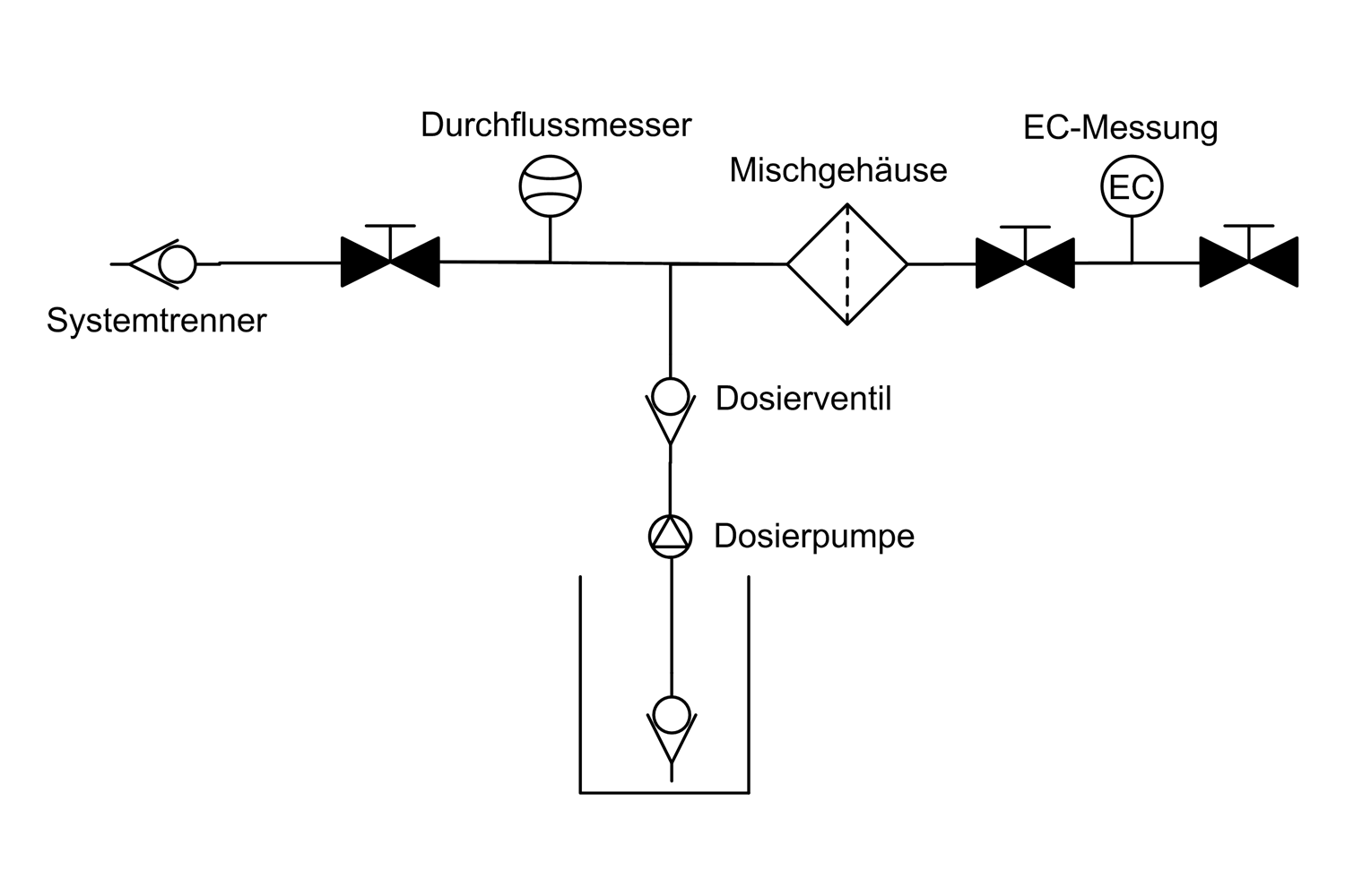 Die Dosieranlagen »FertiDos 31« arbeiten mit frequenzgesteuerten Membran-Dosierpumpen. Ein externer Wassermengenmesser (Impulse oder Analogsignal 4 bis 20 mA) übermittelt der Steuerung die aktuell fließende Wassermenge und diese passt die Drehzahl der Pumpe entsprechend an. Auf diese Weise kann zum Beispiel die Dosierung von Dünger und Gewächsschutzmitteln im Gartenbau sehr präzise erfolgen. Ein weiterer häufiger Anwendungsfall ist die Vorsäuerung des Gießwassers zur Regulierung des pH-Wertes.
